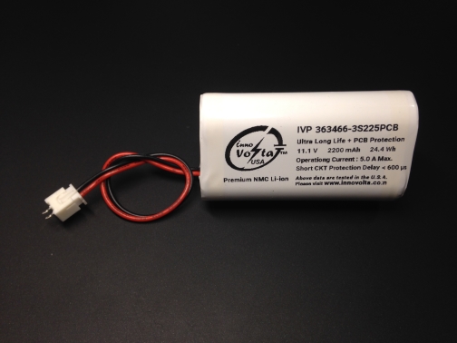 The innoVolta IVP363466-3S225PCB battery pack is designed with great care to operate reliably at 5A rate, 11.1 V. It is perfect for 12 V HID, Halogen Bike Headlight (10 W – 18 W), RC Toys, Robots, and DVD External battery to double the run time. It is also an ideal replacement battery for any 10.8V NiMH battery pack and 11.1V Li-ion battery pack.
